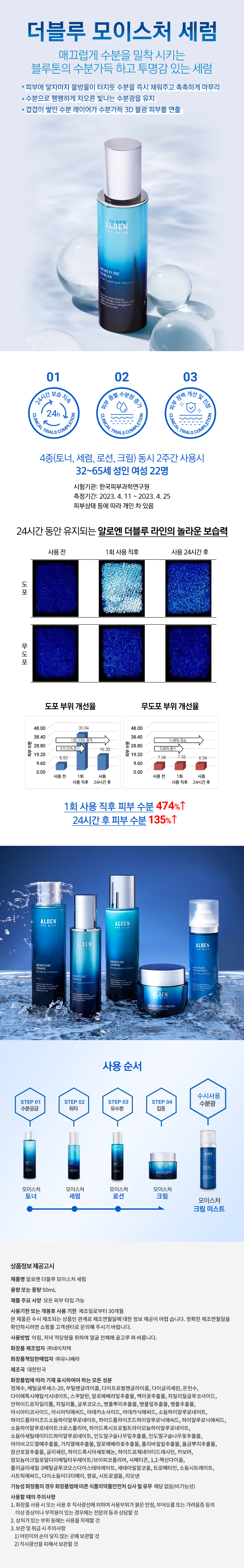 정제수, 메틸글루세스-20, 부틸렌글라이콜, 다이프로필렌글라이콜, 다이글리세린, 온천수, 다이에톡시에틸석시네 이트, 스쿠알란, 알로에베라잎추출물, 백미꽃추출물, 자일리틸글루코사이드, 안하이드로자일리톨, 자일리톨, 글루 코오스, 병풀뿌리추출물, 병풀잎추출물, 병풀추출물, 아시아티코사이드, 아시아틱애씨드, 마데카소사이드, 마데카 식애씨드, 소듐하이알루로네이트, 하이드롤라이즈드소듐하이알루로네이트, 하이드롤라이즈드하이알루로닉애씨드, 하이알루로닉애씨드, 소듐하이알루로네이트크로스폴리머, 하이드록시프로필트라이모늄하이알루로네이트, 소듐아 세틸레이티드하이알루로네이트, 인도멀구슬나무잎추출물, 인도멀구슬나무꽃추출물, 아이비고드열매추출물, 가지 열매추출물, 알로에베라꽃추출물, 홀리바질잎추출물, 울금뿌리추출물, 참산호말추출물, 글리세린, 하이드록시아세 토페논, 하이드로제네이티드레시틴, 카보머, 암모늄아크릴로일다이메틸타우레이트/브이피코폴리머, 시메티콘, 1,2-헥산다이올, 폴리글리세릴-3메틸글루코오스다이스테아레이트, 세테아릴알코올, 트로메타민, 소듐시트레이트, 시트릭애씨드, 다이소듐이디티에이, 향료, 시트로넬올, 리모넨