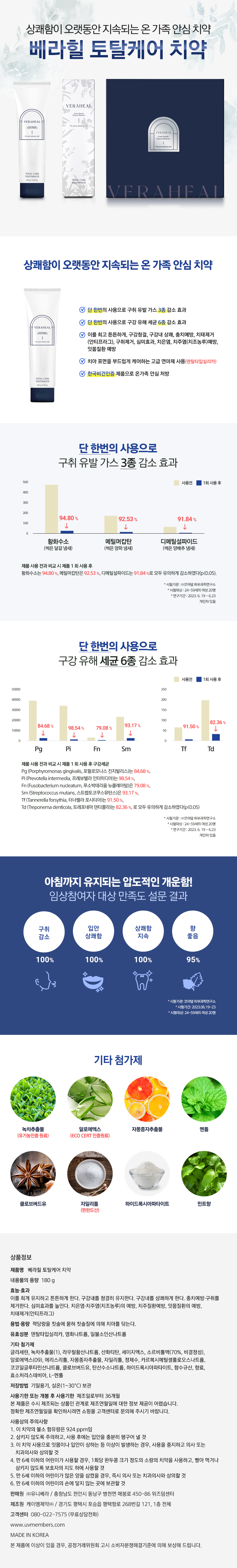 기타 첨가제: 소르비톨액(70%,비결정성), 글리세린, 자일리톨, 효소처리스테비아, 카르복시메틸셀룰로오스나트륨, 함수규산, 코코일글루타민산나트륨, 라우릴황산나트륨, 탄산수소나트륨, 산화티탄, 하이드록시아파타이트, L-멘톨, 향료, 세이지 엑스, 자몽종자추출물, 알로에엑스(09), 클로브버드유, 녹차추출물(1), 정제수