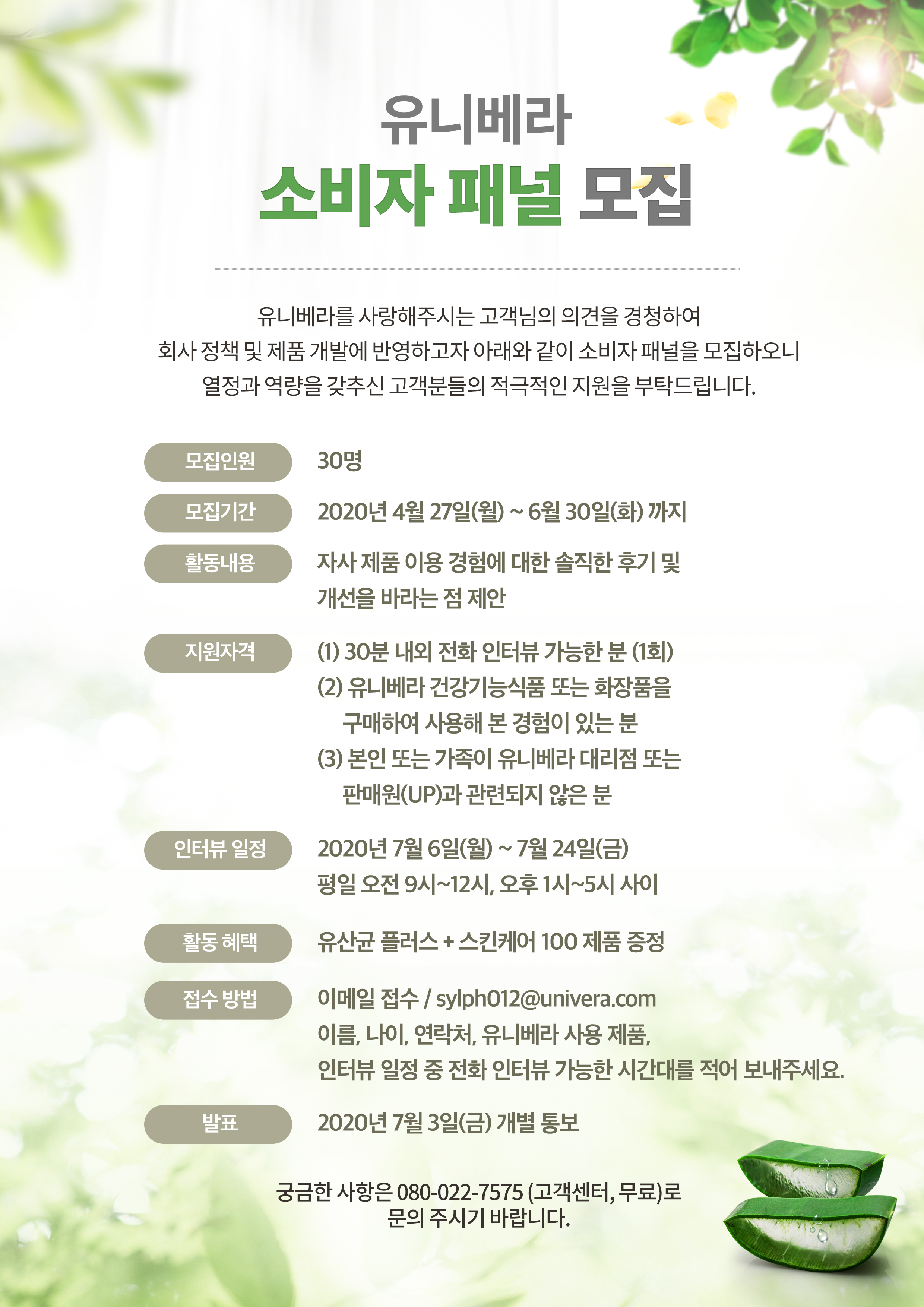 유니베라 소비자 패널 모집